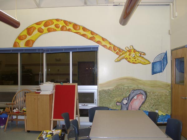 Mural picture 2 donated to the Twin River's Library - Huge Giraffe and Hippo